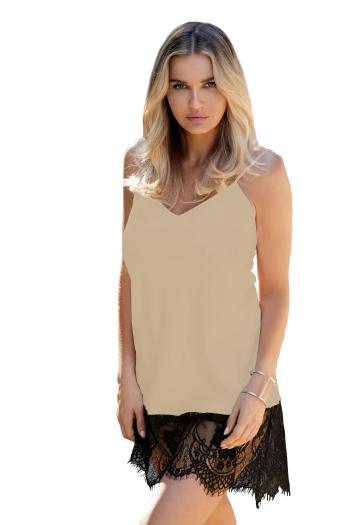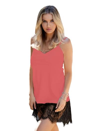 Cindy Dkaren modă camisolă - este fabricat din viscoză confortabilă și elastan, ceea ce conferă țesăturii mai multă elasticitate - camisola are cupe neforțate cu dantelă - zona de sub sâni este decorată cu tul neted cu flori brodate