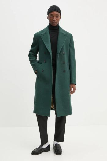 Drôle de Monsieur gyapjúkabát Le Manteau Laine zöld, átmeneti, kétsoros gombolású, E-CT134-WO030-DGN