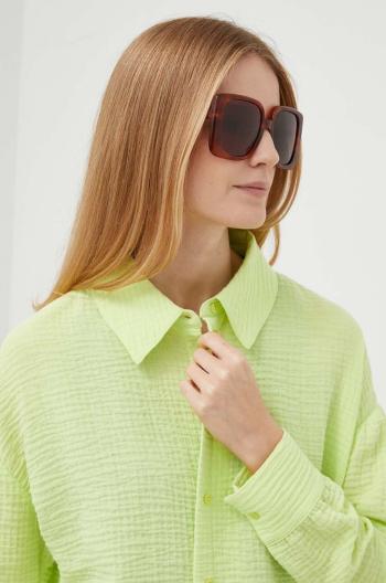 - rochie dreapta maro cu guler ondulat si funda rich royal
